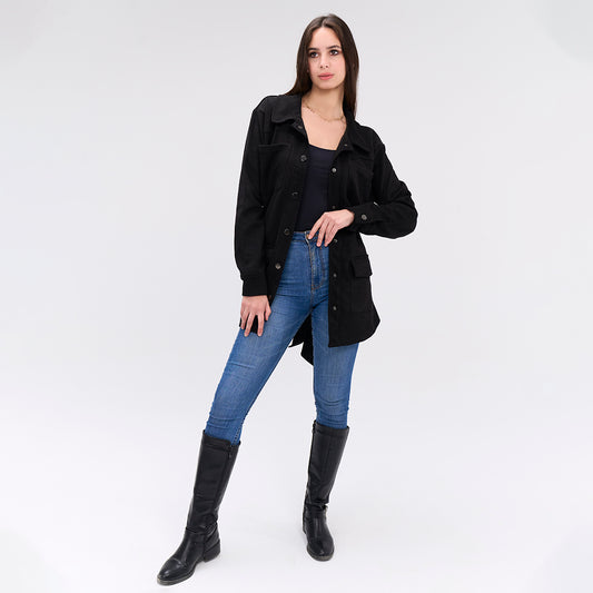 Over-shirt faux suede Black belted