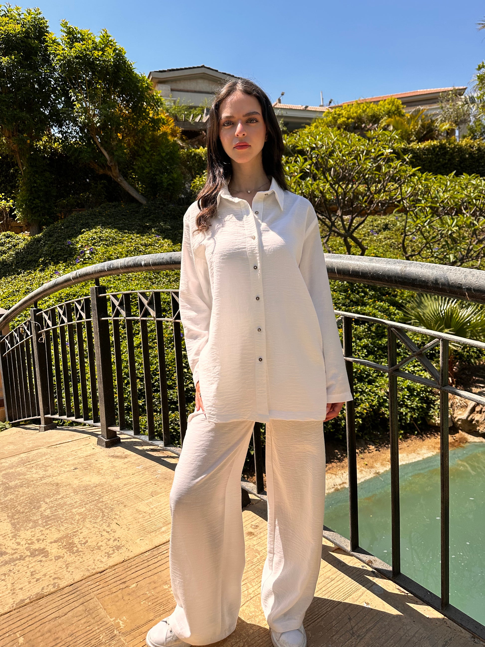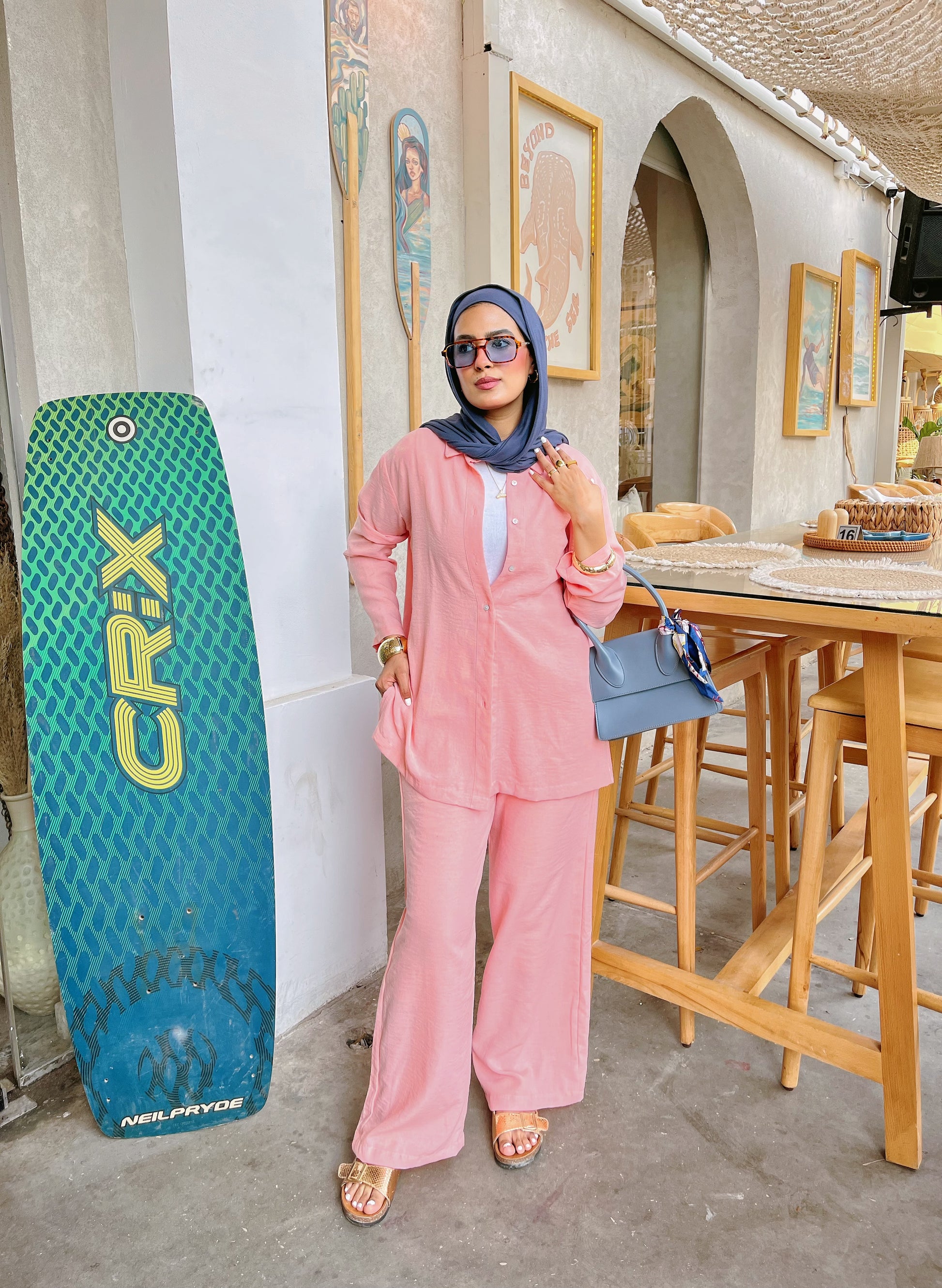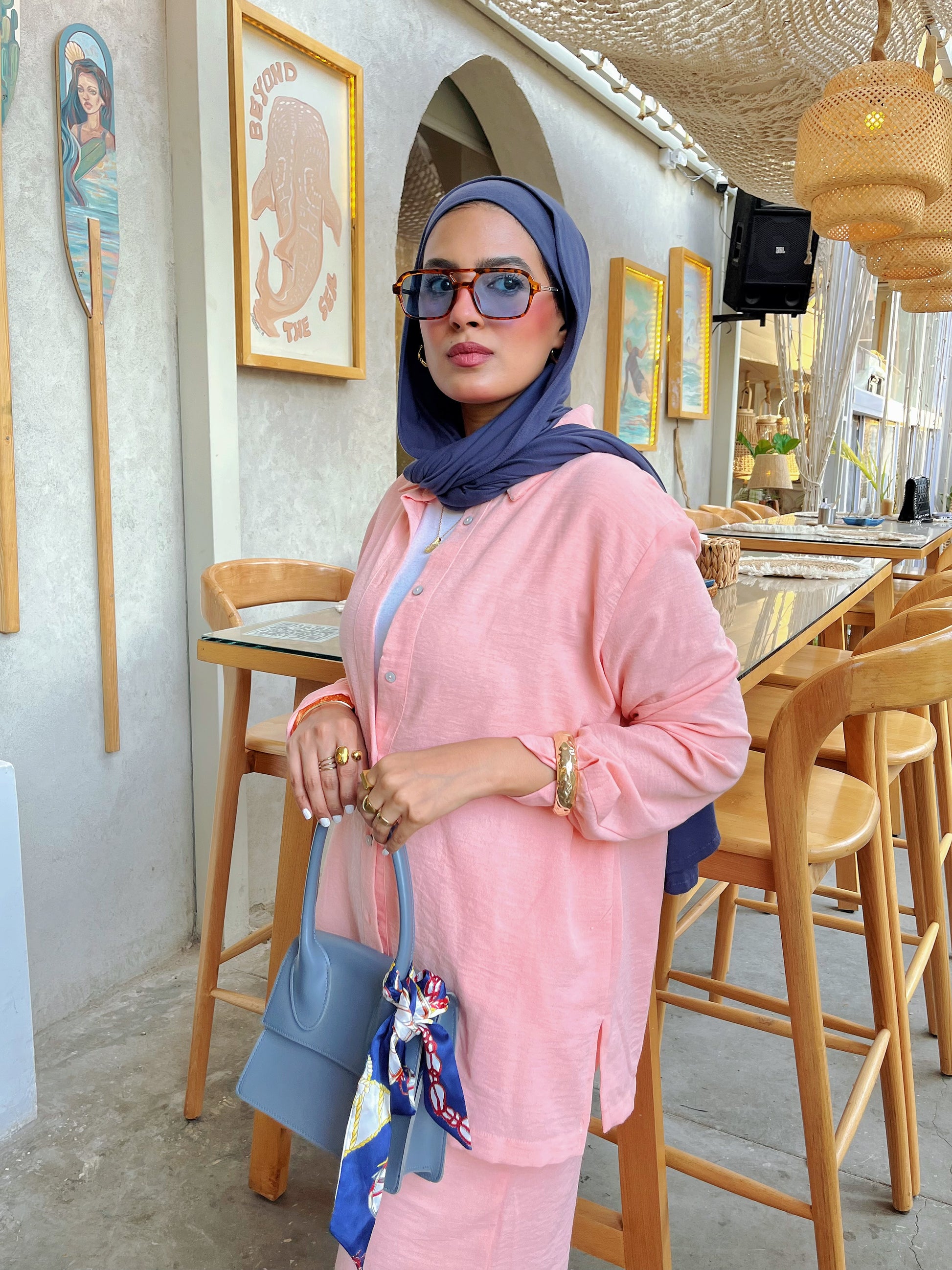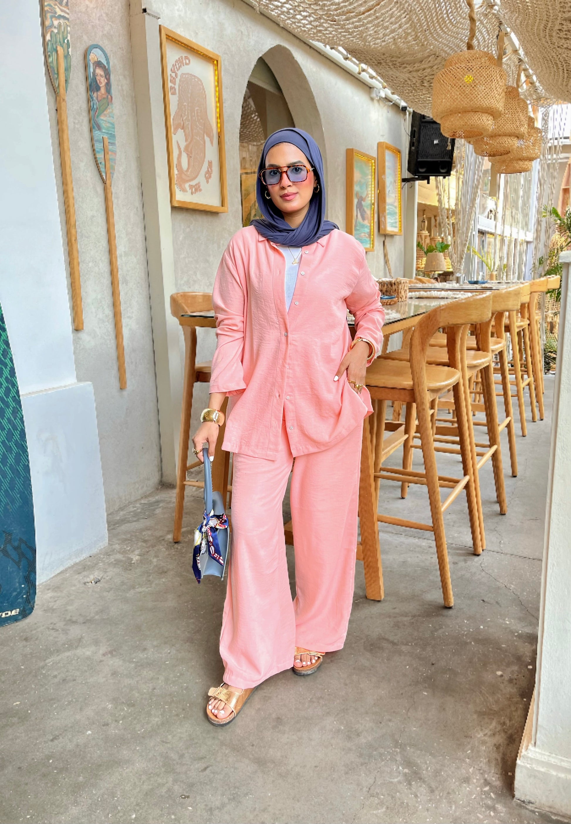 This lightweight co-ord set is crafted from a breathable linen blend fabric that feels soft on the skin while keeping you cool and polished all day long.